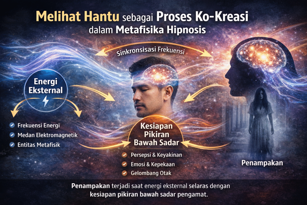Fenomena melihat hantu dalam pendekatan Metafisika Hipnosis tidak lagi dipahami sebagai peristiwa pasif, di mana manusia hanya menjadi objek ketakutan semata. Sebaliknya, fenomena tersebut dipandang sebagai proses ko-kreasi, yakni hasil kerja sama antara energi eksternal dengan kesiapan internal pengamat.