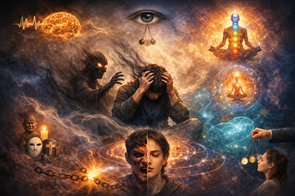 Namun dalam kajian Metafisika Hipnotis, fenomena kerasukan tidak semata dipahami sebagai “dirasuki makhluk”, melainkan sebagai peristiwa perubahan kesadaran atau altered state of consciousness yang dipengaruhi oleh berbagai faktor psikologis, emosional, energetik, serta sistem keyakinan individu.